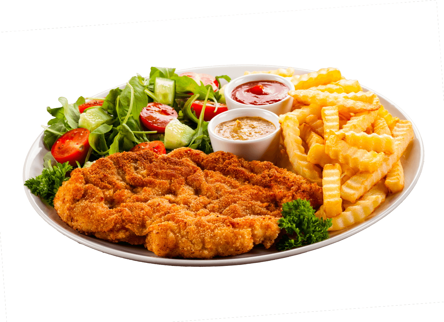 chicken schnitzel topped with napoli, bacon and mozzarella served with chips and saladThe Tolga Tower Burger … $24.00
